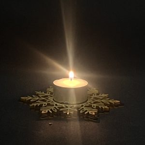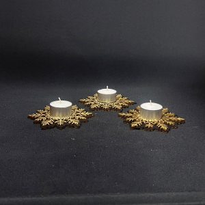 Deze houten waxinelichthouder in zwart met gouden sneeuwvlokvorm (ca. 12 cm doorsnede) brengt warme, kleurrijke sfeer in huis. Stijlvol, gezellig en perfect als winterdecoratie.